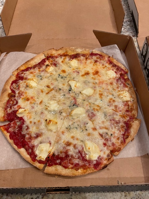 | Type / Appearance: | Takeout was easy. I called in the order and 25 minutes later, it was ready. I parked in the designated spots in front (nicely and professionally marked with proper metal signs) and my food was brought out. The pizza is packaged in nicely branded boxes, consistent with the overall brand of the restaurant. Once opened, you see a really nice looking pie. I ordered both the Margherita (fresh mozzarella, and basil. And, I ordered the FOUR CHEESE (mozzarella, gorgonzola, mascarpone, and parmesan. |