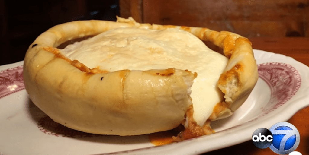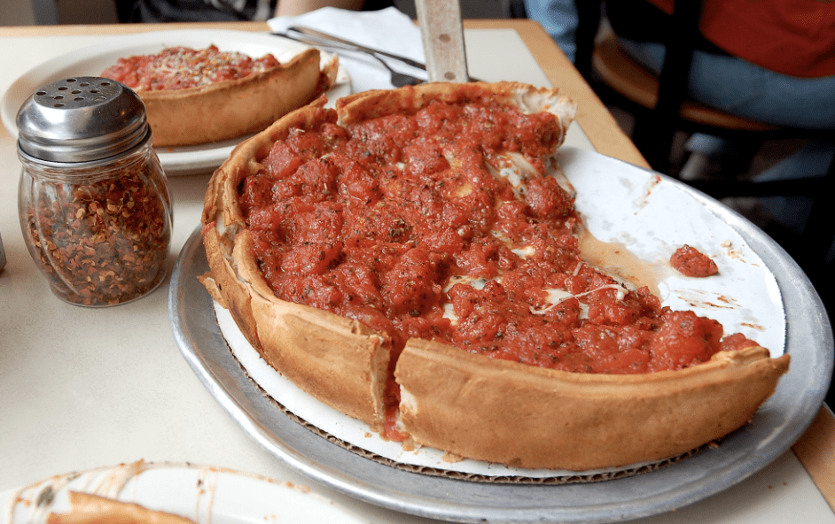 Anything called “deep dish” is NOT pizza. Many years ago, on my first visit to Chicago, everyone kept talking about deep-dish. You HAVE to try the deep-dish pizza. Well, as a lover of pizza, I did just that; I ordered deep-dish. Some 39 days later, the “pizza” was delivered to the table. It weighed about ten pounds and looked something like this gooey, leaking mess: